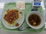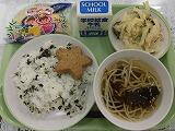 本日は七夕。1年生がこぼれないように、やけどしないに給食を入れていました。