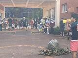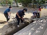 本日は9時よりPTA作業があり、多くの保護者、そして野球部員が参加して下さり、運動場側溝の溝さらい、樹木の剪定を行いました。2年生保護者が中心になって運営して下さり、冷たい麦茶や塩飴、おやつも用意して下さりました。熱中症者も出ずに、予定していた時間より早く終わり学校がきれいになりました。(^_^) たいへんありがとうございました。(^^)v