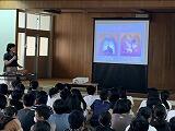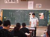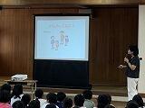 本日は、那覇警察署の佐渡山さんにお越しいただき、ふれあいプラザで、2校時は低学年、3校時に中学年、4校時に高学年へプレゼン形式で講話をしていただきました。発達段階に応じていじめや万引き、SNS等の悪用、薬物乱用防止など具体的なお話がありました。子ども達は真剣にお話を聞き、自分で自分の身を守る意識と行動の仕方を再確認できた様子でした。