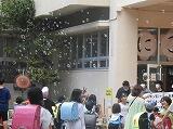 ①登校時には、児童会の発案で、「みんなが笑顔で登校できるようにシャボン玉シャワー」を展開していました。(^_^)