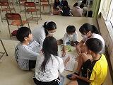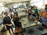 5年生がグループごとに協力してサラダを作り、試食しました。(^^)