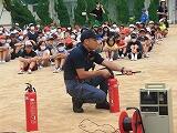 西消防署の4人の消防隊員の立会いのもと、火災避難訓練を行いました。