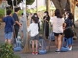 児童会の運営委員が年に数回、みんなが元気登校してくることを願ってシャボン玉挨拶運動を行っています。(^^)