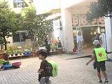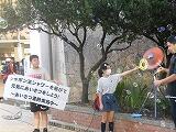 児童会の運営委員が年に数回、みんなが元気登校してくることを願ってシャボン玉挨拶運動を行っています。(^^)