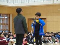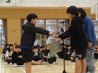 6年生から4~5年生への「委員会引継ぎ式」が体育館で行われました