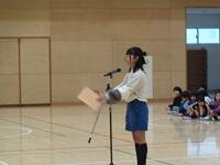 1~3年生が見守る中、11の委員会の代表者が前に出てきて、それぞれの委員会で大切にしている