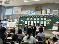 5年生の代表者が「先輩たちが頑張った仕事をしっかり引継ぎ、日本一の楽しい、いい開南小学校に