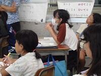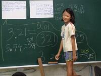 2組の子供達、これまでの学習で習ったことを使って、一生懸命にやり方を考え、黒板の前に出てきて