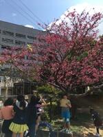 開南小の運動場の周りにあるサクラの花が満開です。