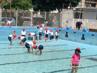 これから学習を行っていくプールを自分たちの手で清掃することにより、気持ちよく学習に取り組めるように準備を整えました。
