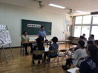 県庁前派出所の交番長から説明を受けた後、校区内の危険個所を確認して安全マップを再編成する作業を行いました。