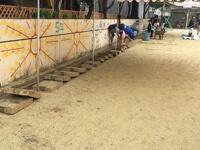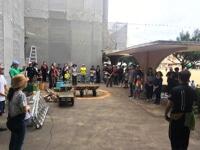 今年は外壁工事をしている方々にもテントの立ち上げや土嚢の設置に協力してもらいました。