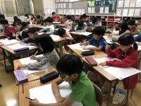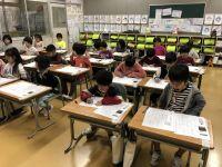 1年生と2年生は硬筆で文字をていねいに書きました。