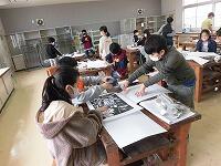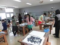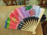 6年生「おうぎにデザイン」 5年生「版画刷り」 1年生「とびだすふうせんへび」