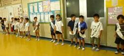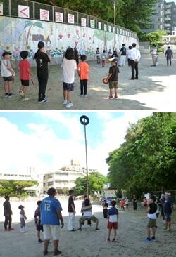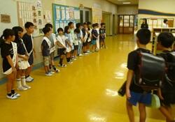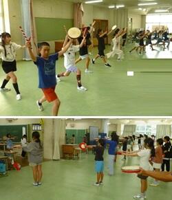 運動会に向けて,お昼の休み時間を利用し,5・6年生はエイサー練習を始めています。みんな真剣に取り組んでいます。
