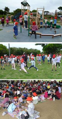 『春の遠足』に出かけました。1~3年生と一緒にグスクロード公園(なんじー公園)に行きました。晴天ではなかったけど,おかげで涼しい中で過ごすことができました。思いっきり,楽しみました~!!