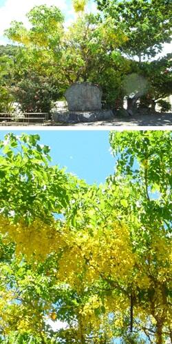 校門から入って右側にあるゴールデンシャワーの花が見事です。そろそろ散りかけてきていますが,まだまだ見頃です。和名は「ナンバンサイカチ」というそうです。