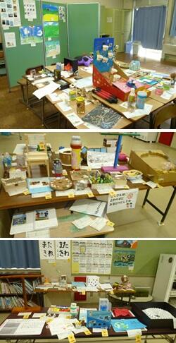 各学年の夏休みに取り組んだ絵や習字,工作等の作品が展示されています。明後日の授業参観の際,じっくりとご覧下さい。