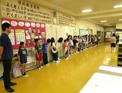 今日から,各学年2回ずつのあいさつ運動に取り組みます。まずは6年生からのスタートです。大きく元気な声で「おはようございます」と朝のあいさつをしました。