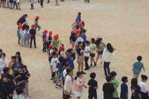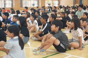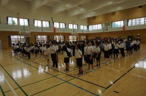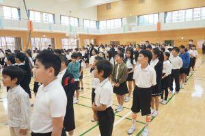 新任式を終えて、始業式を待つ神原っ子の整然とした姿が素晴らしい。