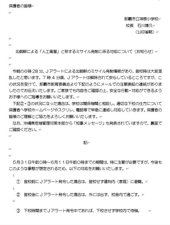 学校からのお知らせと・知事メッセージ