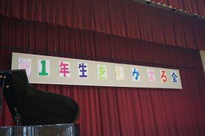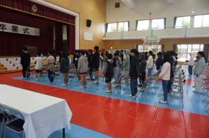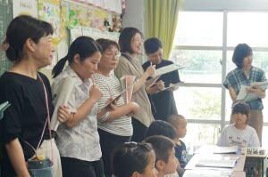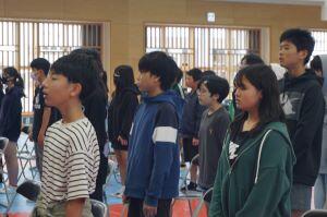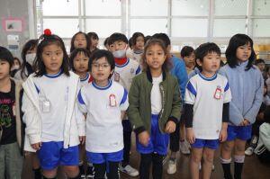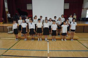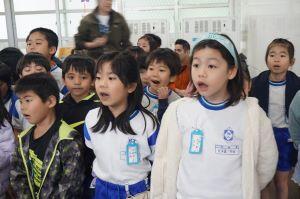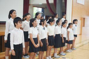 かわいい指揮者にあわせて、校歌を歌っています・・