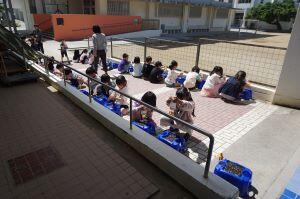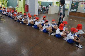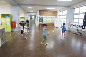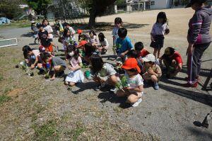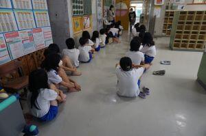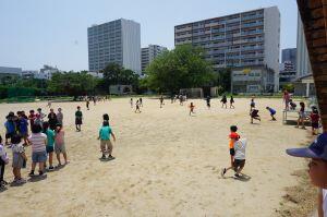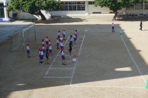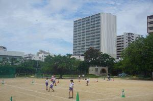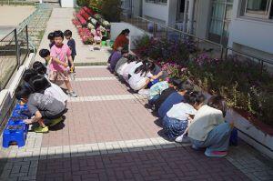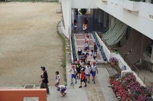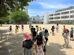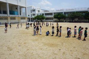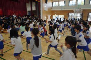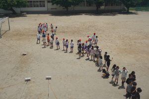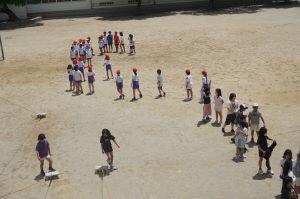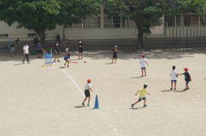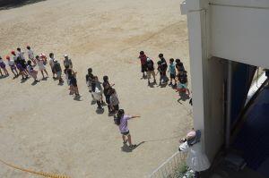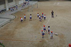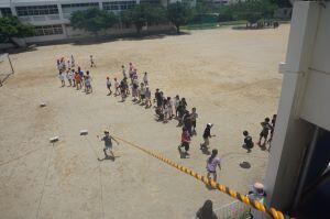 のぞいてみると、一年生が楽しい鬼ごっこ・・