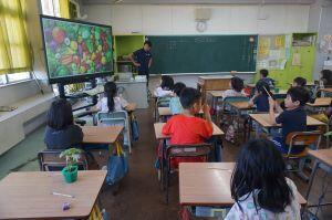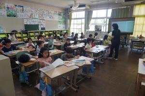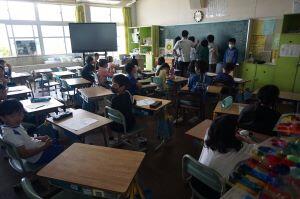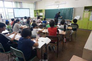 今日は5年生のクラスに那覇市の出前授業の方が、大勢入らしていました。