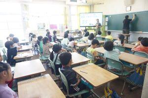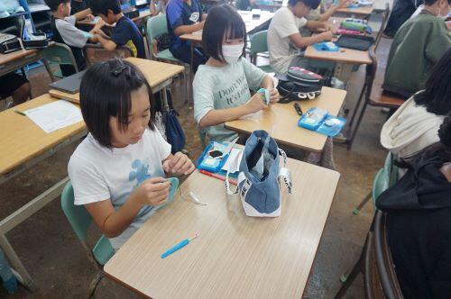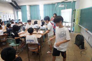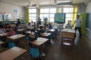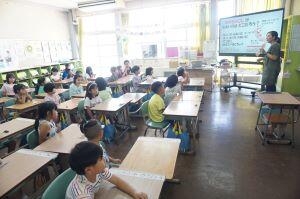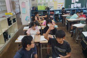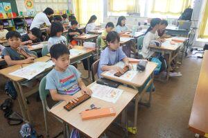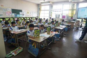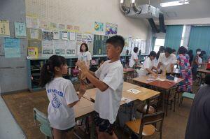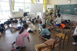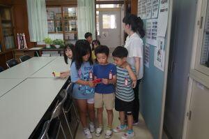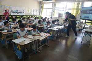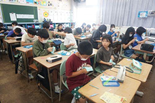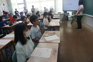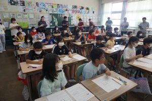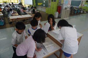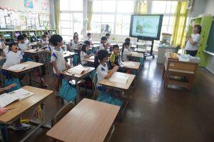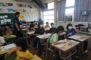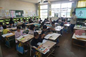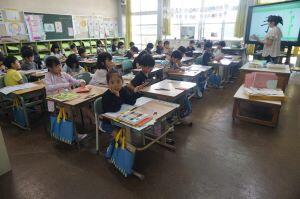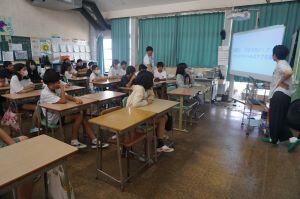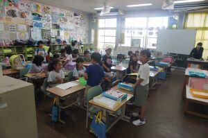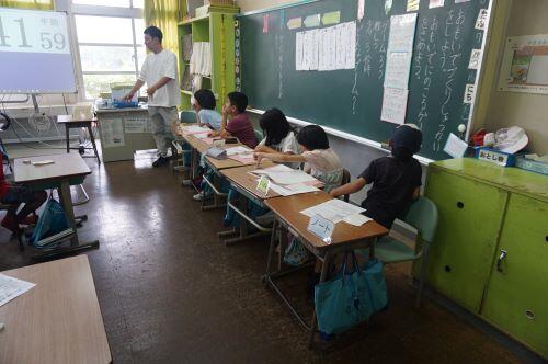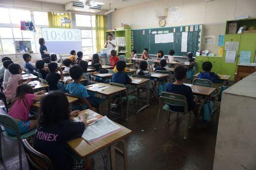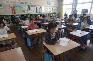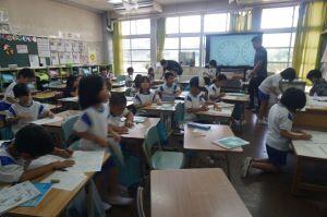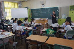 5年生の教室を除くと、南海子先生が歯磨き指導をしていました。