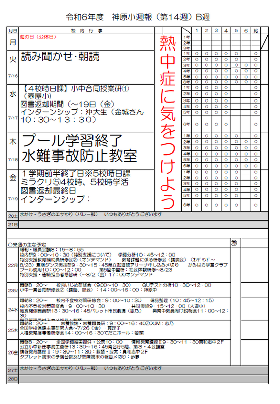 2学期始業式に元気な顔で会いましょう!!待ってるよ!!