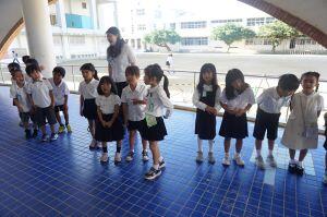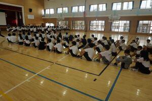 先生が、校歌斉唱の前に、お顔のマッサージを教えたんです。歌いやすいように・・