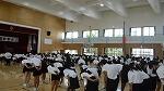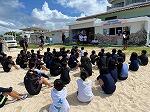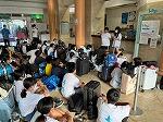 本日の那覇市は、よく晴れて気持ちよいお天気です。6年生児童の皆さんは早朝から学年Tシャツにそろえて登校し、体育館で修学旅行の出発式を行いました。一緒に引率する先生方の紹介や心構えを確認し、機敏に行動できるように場所移動をしての整列の練習もしていました。