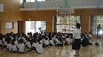本日5・6校時目に4学年は、那覇特別支援学校の先生をお招きして「福祉体験」をしました。先生は、視覚障がいについてのお困り感やその誘導(誘導者の声掛け・立ち位置・歩く速さ等)また肢体不自由障がいについて移動に使う車椅子の注意(声掛け・速さ・坂の上り下り・通り道のくぼみの通り方等)、最後に視覚障がいのお困り感とその軽減の方法(補聴器の使用・手話でのコミュニンケーション)等について詳しくお話しして下さいました。児童の皆さんも杖を使う方の誘導や車椅子の押し方等々を実地で行ったり、また気づいたことを発表したりと積極的に参加していました。那覇特別支援学校の先生、本日はありがとうございました。