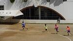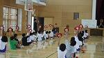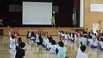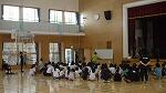 最後に大太鼓を入れて、皆で声やバチの音、足の上げ・手の振りを合わせながら「ダイナミック琉球」を演舞しました。初めとは、段違いに上手になっていました。児童の皆さん、楽しく演舞していました。主事の先生、本日は1時間の練習で見違えるほど児童の皆さんの演舞をよくしていただいてありがとうございました。