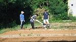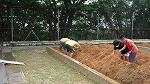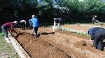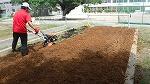 本日は午前中から教材園で畑の土つくりをしました。先週までに周りの草刈りをして畑をきれいにし、本日は肥料を混ぜて耕運機で混ぜる作業を行いました。先生方協力しながら取り組みます。明日は出勤職員総出で畝をつくる予定です。