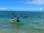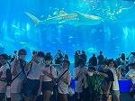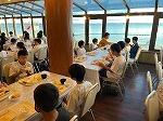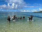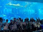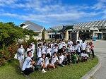 そして8時前。体育館玄関を出て、学校に残る他学年児童の「行ってらっしゃい!」の声を受けながら1泊2日の旅に、にこにこの笑顔で出発して行きました。今年の修学旅行では、美ら海水族館等の施設見学やマリンスポーツ体験(シーカヤック・ドラゴンボート・グラスボート)の他、愛楽園にてハンセン病について学習する機会もあります。