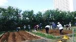 本日、午前9時前より、出勤職員総出で畑作業を行いました。本日の作業は、耕運機をつかっての耕作作業の他、主に畝(うね)つくりを行いました。畝つくりはスコップやくわを使っての手作業なのでなかなか大変ですが、職員皆で行ったので1時間半の時間で瞬く間に終了することができました。途中給水時間を挟んでの作業でしたので皆楽しく行っていました。畑は2学期に児童の皆さんが、大根や人参、玉ねぎ、ジャガイモを植えて育てていく計画をしています。