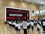 最後は6年生の児童の皆さんが「おぼろ月夜」の合唱とリコーダーによる演奏の中、各学年とも整然と退場しました。全校児童で1学期を振り返り、2学期の頑張りたいことにつなげられた終業式でした。児童の皆さん、明日から秋休みが始まります、体調に留意し、充実したお休みを過ごしてくださいね。