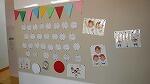 1年生児童の皆さんはの運動会へ向けて頑張りたいことをワークシートに書いて掲示板に飾りました。