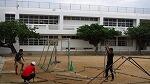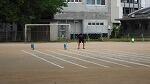 〇体育の先生も暑い中、運動場の表示に大忙しです。