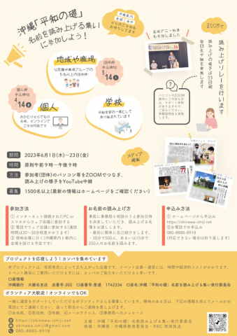 その一環として、今年度は新たに「沖縄『平和の礎』名前を読み上げる集い」のプロジェクトに参加することになりました。