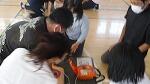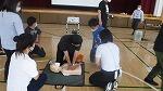本日午後3時45分より体育館において、中部徳洲会の看護師を講師としてお招きし、心肺蘇生講習会が行われました。この講習会には本校の先生方の他、神原こども園・神原児童クラブの先生方も参加し、皆がグループになって声をかけ合いながら、心肺蘇生の実技指導やAEDの使用法を学びました。まとめのビデオ視聴では、過去に心肺蘇生の講習を受けた学校で実際にAEDを使った時、先生方が落ち着いて連携し、人命救助に当たることができたことが紹介されていました。日頃からの役割分担と協力の大切さが良く分かったと視聴後の先生方からも感想がありました。本日は、この講習のために本校に足を運んでくださった中部徳洲会の皆様、また一緒に講習会に参加していただいた神原こども園・神原児童クラブの先生方、ありがとうございました。子供たちの命を守るために職員一同、連携をはかってまいります。