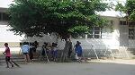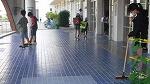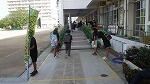 本日は台風6号が過ぎ去り、突風もおさまってきました。職員で運動場や正門周辺、図書館裏、飼育(うさぎ)小屋等々の清掃を行いました。