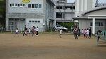 最近は雨天の日もあり、晴れ間は貴重な体育日和です。本日も5年生の児童の皆さんが運動場で、ネット型競技の「テニピン(テニスとピンポンを組み合わせたもの)」を楽しく行っていました。