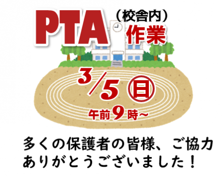 本日、2、3校時は全校児童で清掃や花鉢運び、入学式会場設営を行いました。2~6学年の皆さん、ありがとうございました。新1年生の教室の準備も進んでいます。この後先生方・職員で最終の準備・確認を行う予定です。新入生の皆さん、保護者様、4月10日(月)の入学式をお待ちしています。