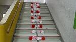 校舎内の階段踊り場には「かみはらっこ みっしょん けんこうしんだんをこんぷりーとせよ!!」の合言葉で健康診断のお知らせが掲示されています。尿検査や身体測定、聴力検査、視力検査、心電図検査、歯科検診、内科検診等についてののイラストが掲示されています。けんこうしんだん、自分の体を知る チャンス!です。