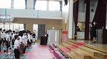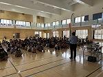 講話では、実業団時代に主将に指名され、自分にできるはずはないと逃げている時にコーチから「立場が人を変える」ということばに背中を押され、主将を引き受け、務めていく中でチームを見る見方や考え方が広がり、人として成長できたこと。試合中に接触による大けが(頭を打ち意識を失い、複数骨折で救急搬送)をし、引退を考えたときに仲間やファンなど周りの方からの温かい励ましがあり、続ける決意をし、チーム初の日本一に輝いたことなど、これまでの経験から学んだことを教えてくれました。そして最後には「常に感謝の気持ちを大切にしてほしい」親、先生、友人など周りの人、そして体育館や机やユニフォームなどのモノ、とにかくあらゆることに感謝の念を持ち歩んでほしいと熱いエールで締めくくりました。