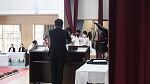本日8時20分より体育館において、那覇市共同募金委員会(那覇市社会福祉協議会)の皆様をお招きして赤い羽根共同募金・学童募金 贈呈式が行なわれました。