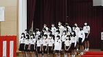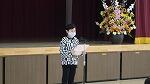 後半はPTA会長から児童代表に花束が手渡されるとともに、児童の皆さんも元気な声で新入生のあいさつと歌「どきどきどん!1年生」を歌いました。