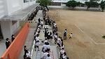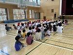 今回で3回目となる避難訓練、児童の皆さん回を重ね、避難する様子もすばらしいです。本日は当初は運動場避難でしたが、今朝までの雨でコンディションが悪く、急遽体育館避難となりました。